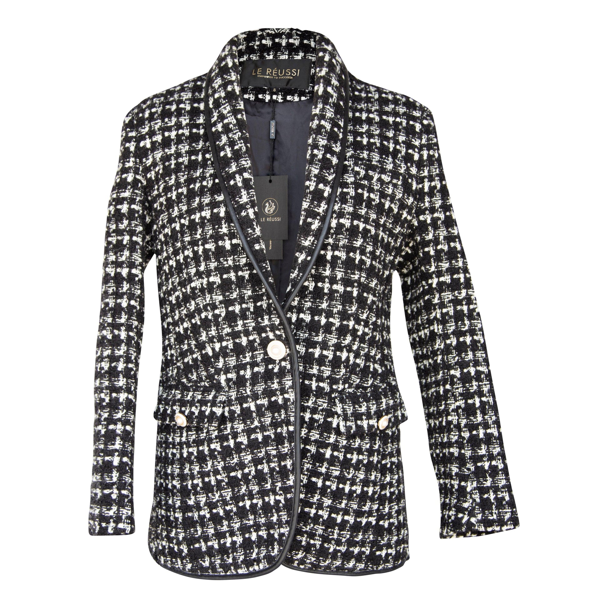 Black & White Tweed Checkers Blazer – Women’s Chic Tailored Jacket